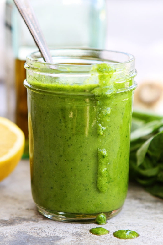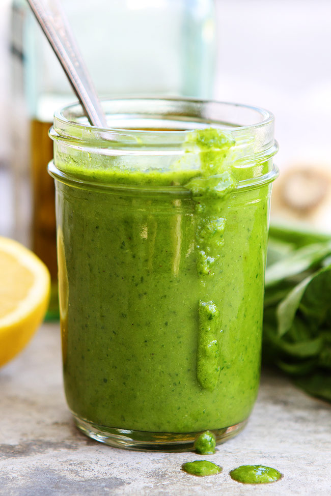 Σάλτσα φρέσκου βασιλικού, με ελαιόλαδο βασιλικού και παρμεζάνα.